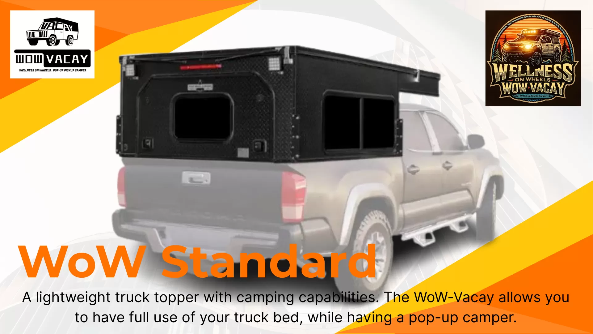 Welcome to WoW-VacayWhen you book a Pop-up pickup camper with us, you can enjoy more than just a road trip. With our travel concept "Wellness on Wheels"Vacation.(WoW-Vacay) enjoy the combined comfort and flexibility of PU-RV travel with holistic wellness experience.At Wow-Vacay, we believe that the journey is just as important as the destination. Our mission is to empower adventurers, outdoor enthusiasts, and road-trippers with the freedom to explore the world on their terms. We specialize in providing premium truck campers, high-quality camping equipment, and expert customization services that turn your travel dreams into reality.
